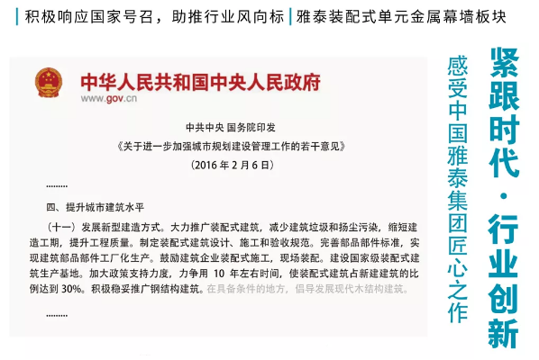 規(guī)模式的生產(chǎn)車間、全新的生產(chǎn)流程、更加合理的工藝布局及大批優(yōu)秀的管理人才和高級技術(shù)骨干,使得雅泰集團(tuán)迅速成為行業(yè)內(nèi)單個工廠產(chǎn)能最大、技術(shù)水平最高的鋁單板企業(yè)。近年來,通過自身的發(fā)展與努力,雅泰用實力贏得了業(yè)界的良好口碑,眾多龍頭建筑商、幕墻公司均與雅泰達(dá)成了長期合作意向。